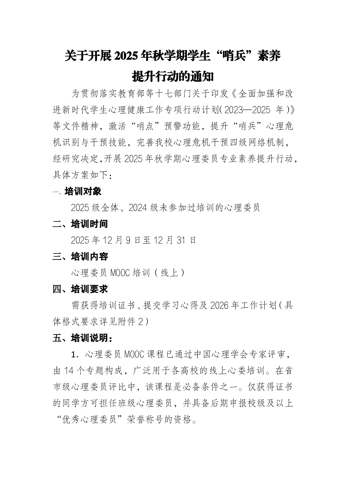 关于开展2025年秋学期学生“哨兵”素养 提升行动的通知