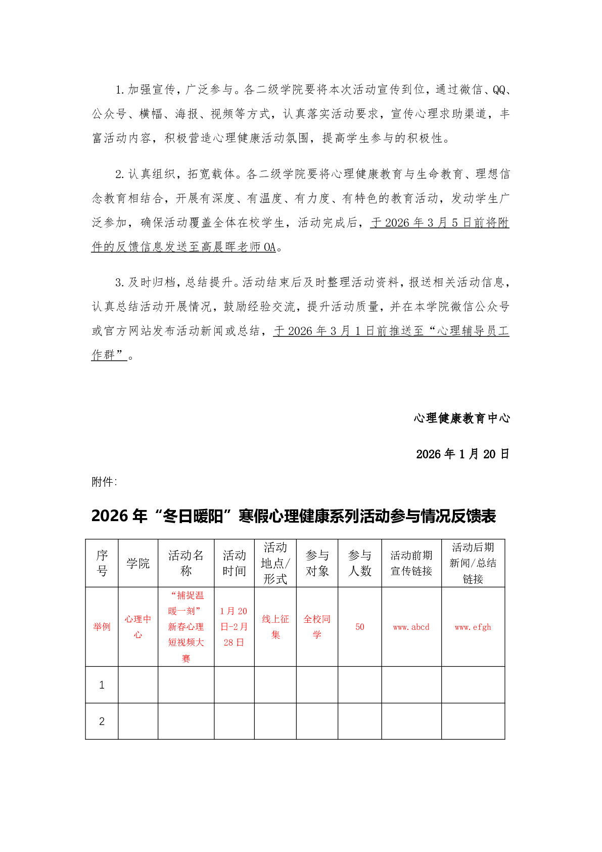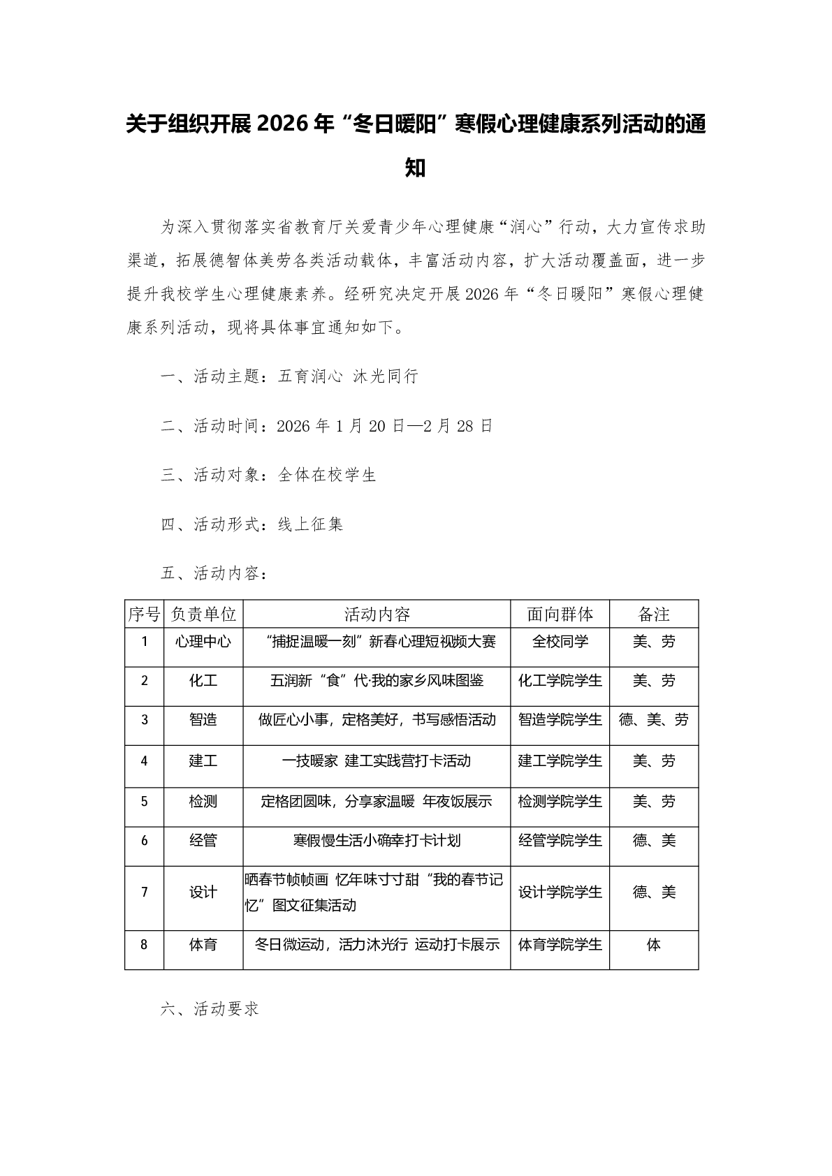 关于组织开展2026年“冬日暖阳”寒假心理健康系列活动的通知
