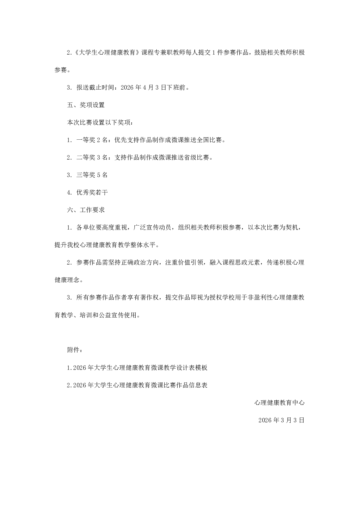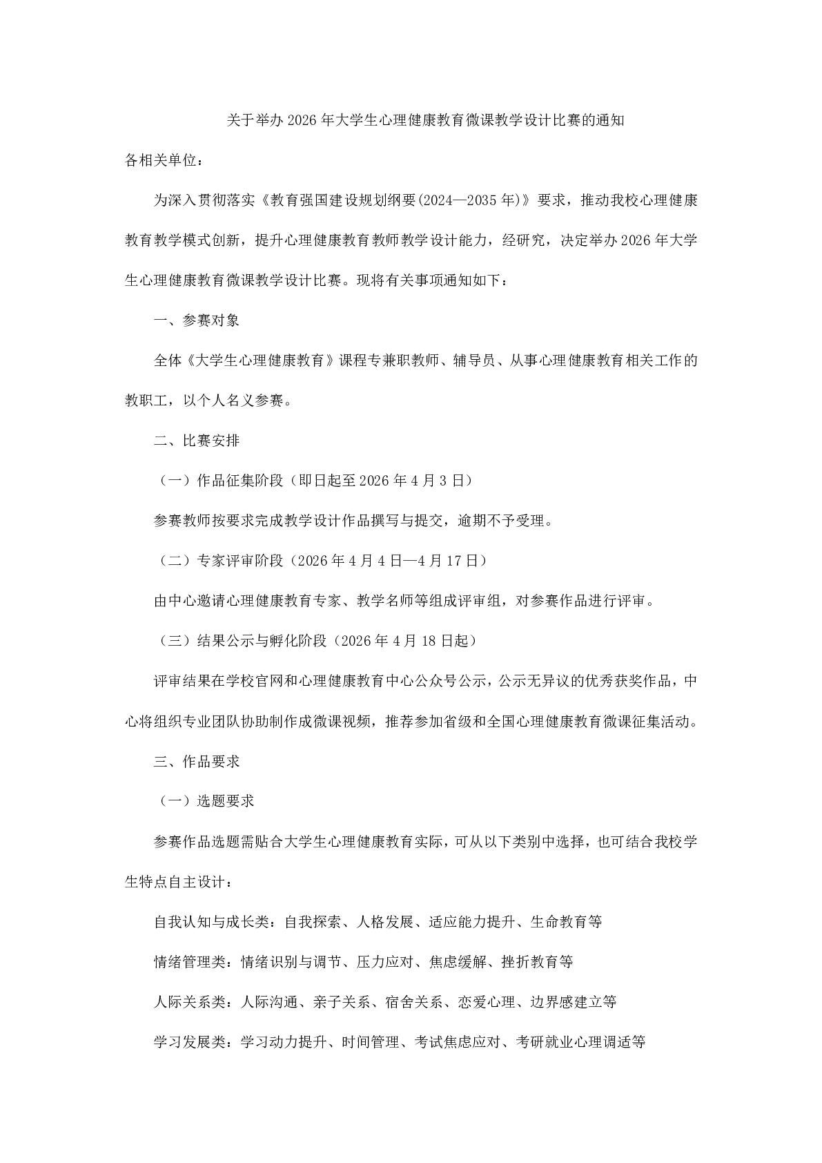 关于举办2026年大学生心理健康教育微课教学设计比赛的通知